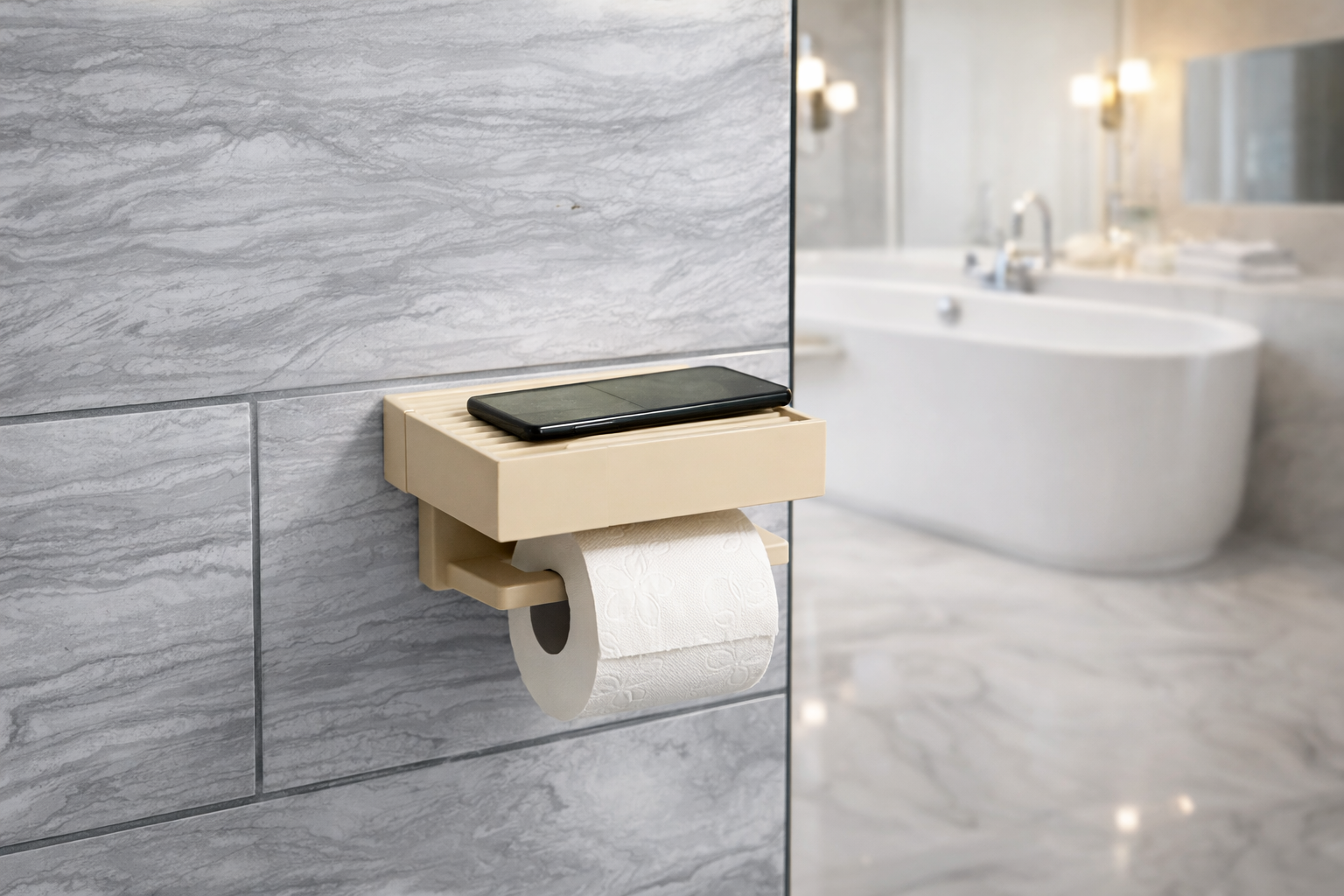 Eleged van abból, hogy nincs hova tenni a telefonod a fürdőben? Ez a 2 az 1-ben WC-papír tartó pont erre a problémára készült.
