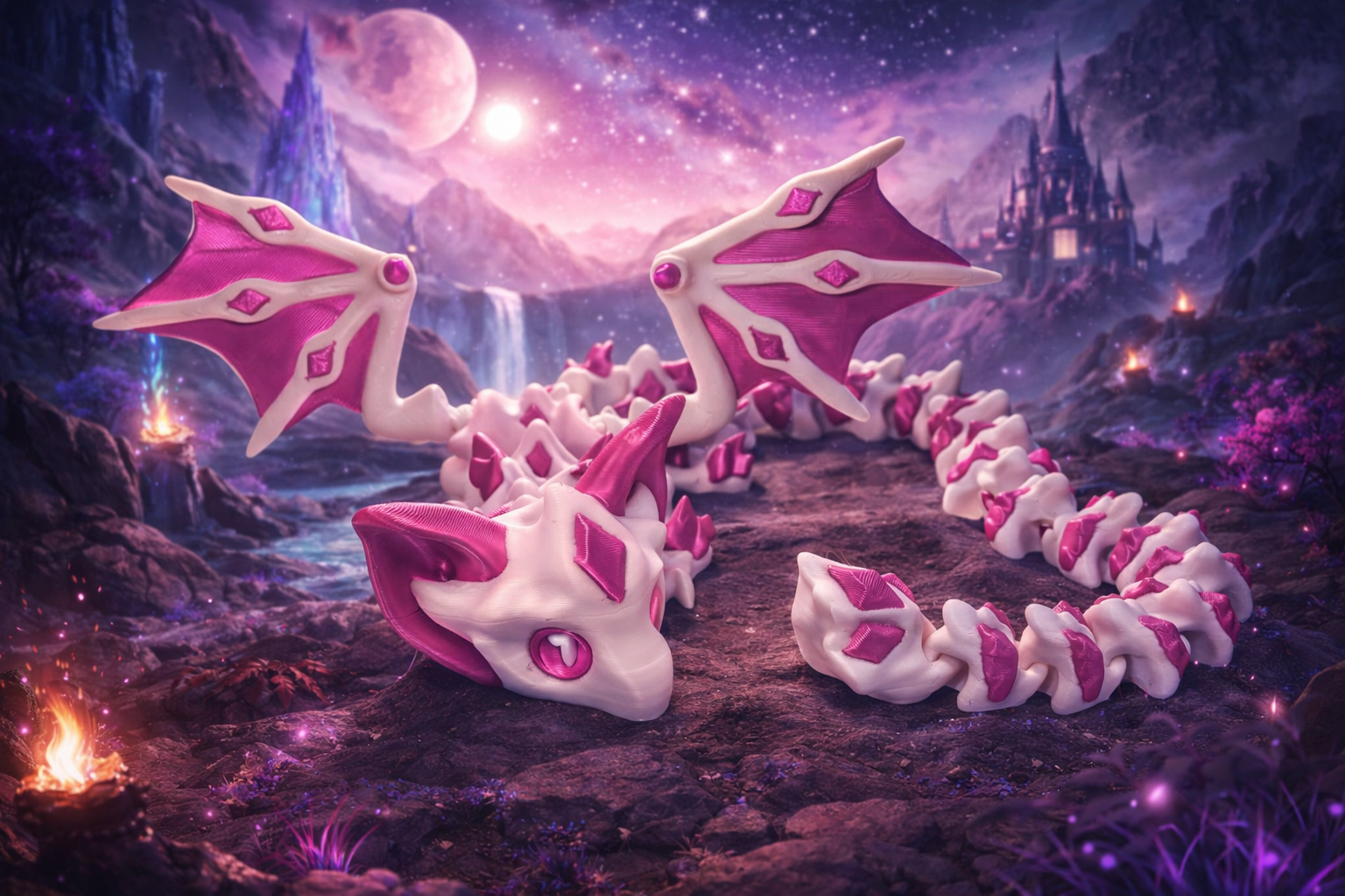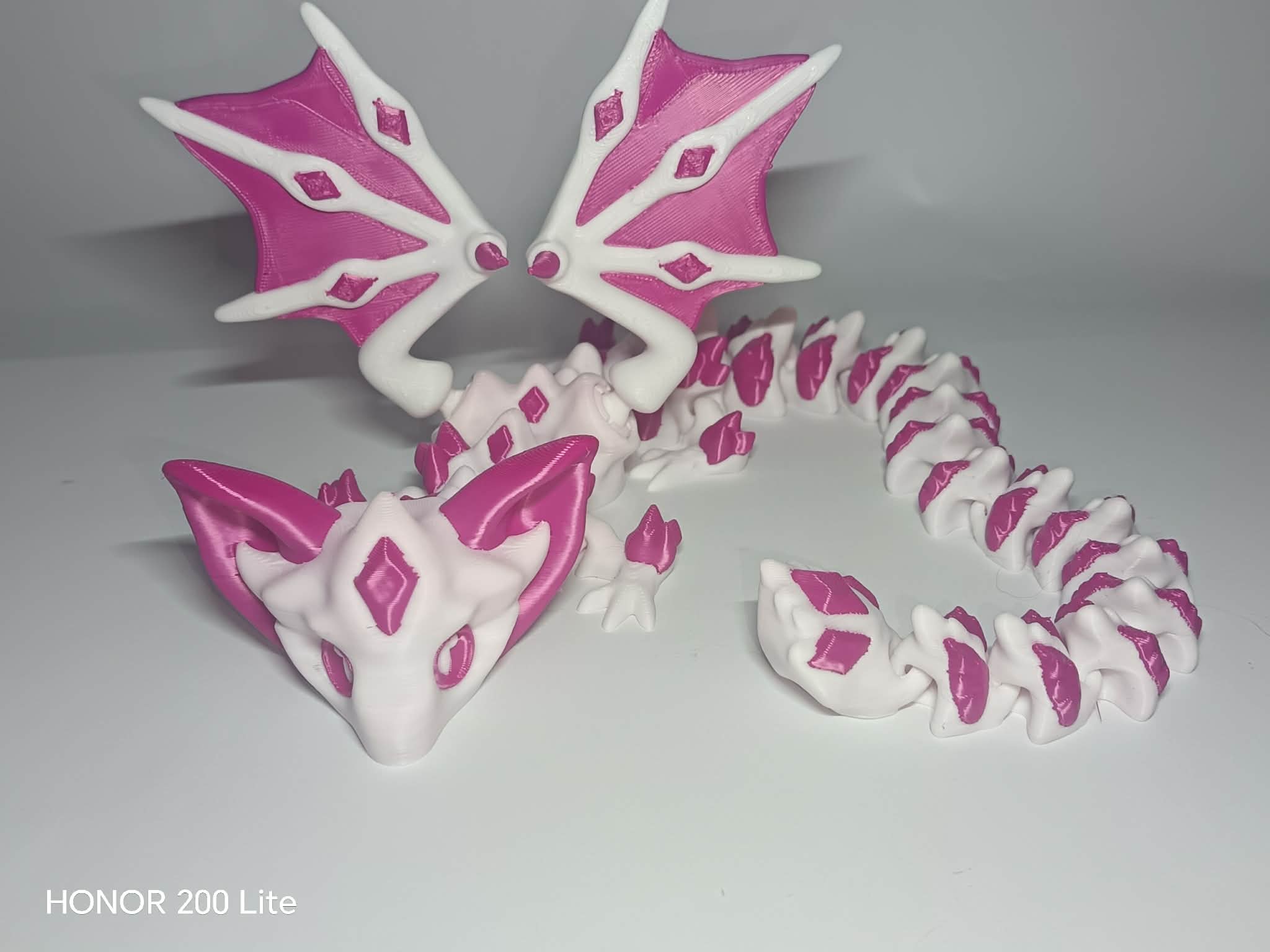 A Denevér Sárkány a klasszikus sárkányforma és a denevérek sötét eleganciájának találkozása. Szélesen ívelt, áttört mintás szárnyai, csontozott teste és ízületes, hajlékony gerince karakteres, mégis játékos megjelenést ad neki. Leteszed az asztalra – és azonnal odavonzza a tekintetet.