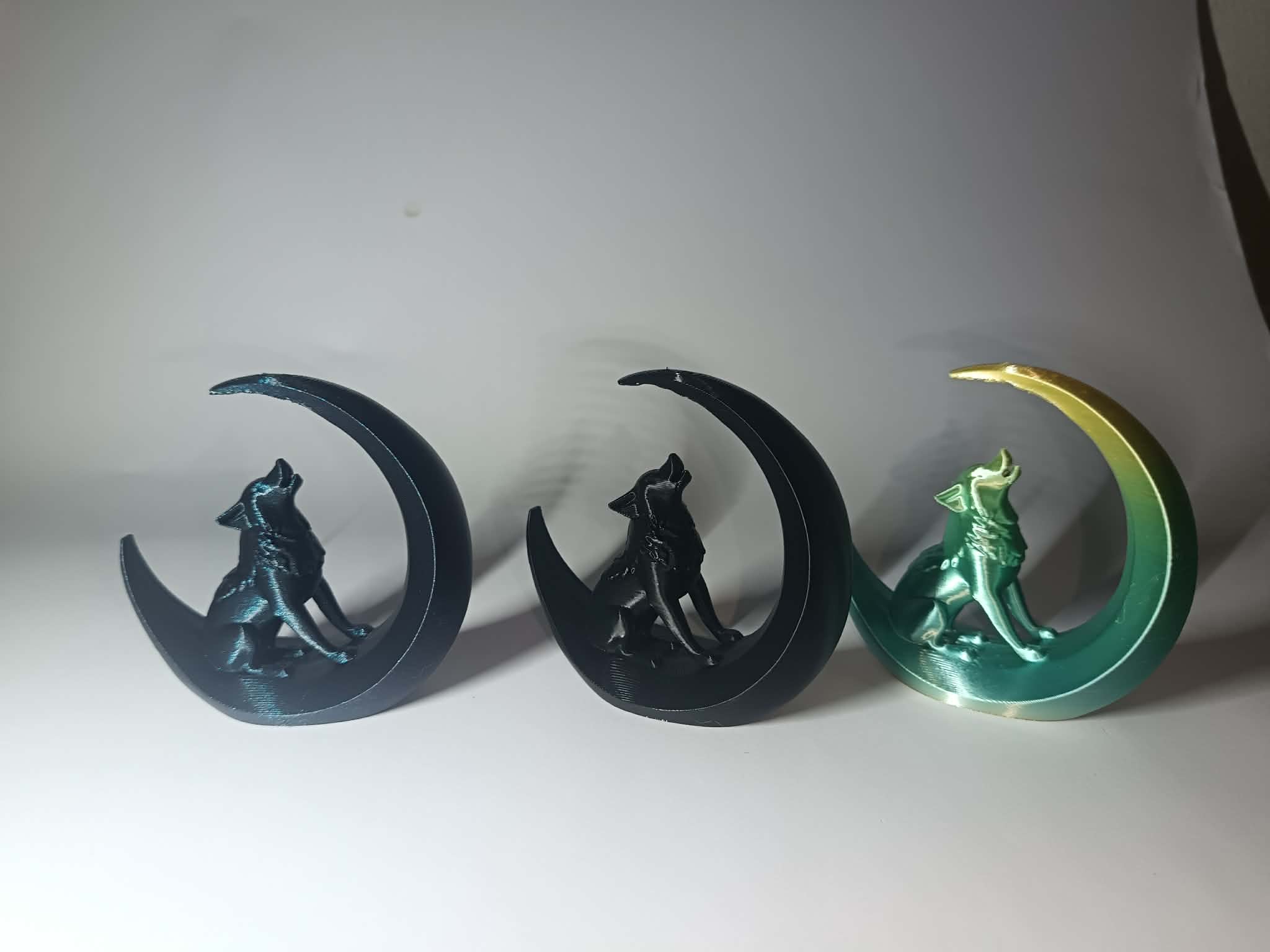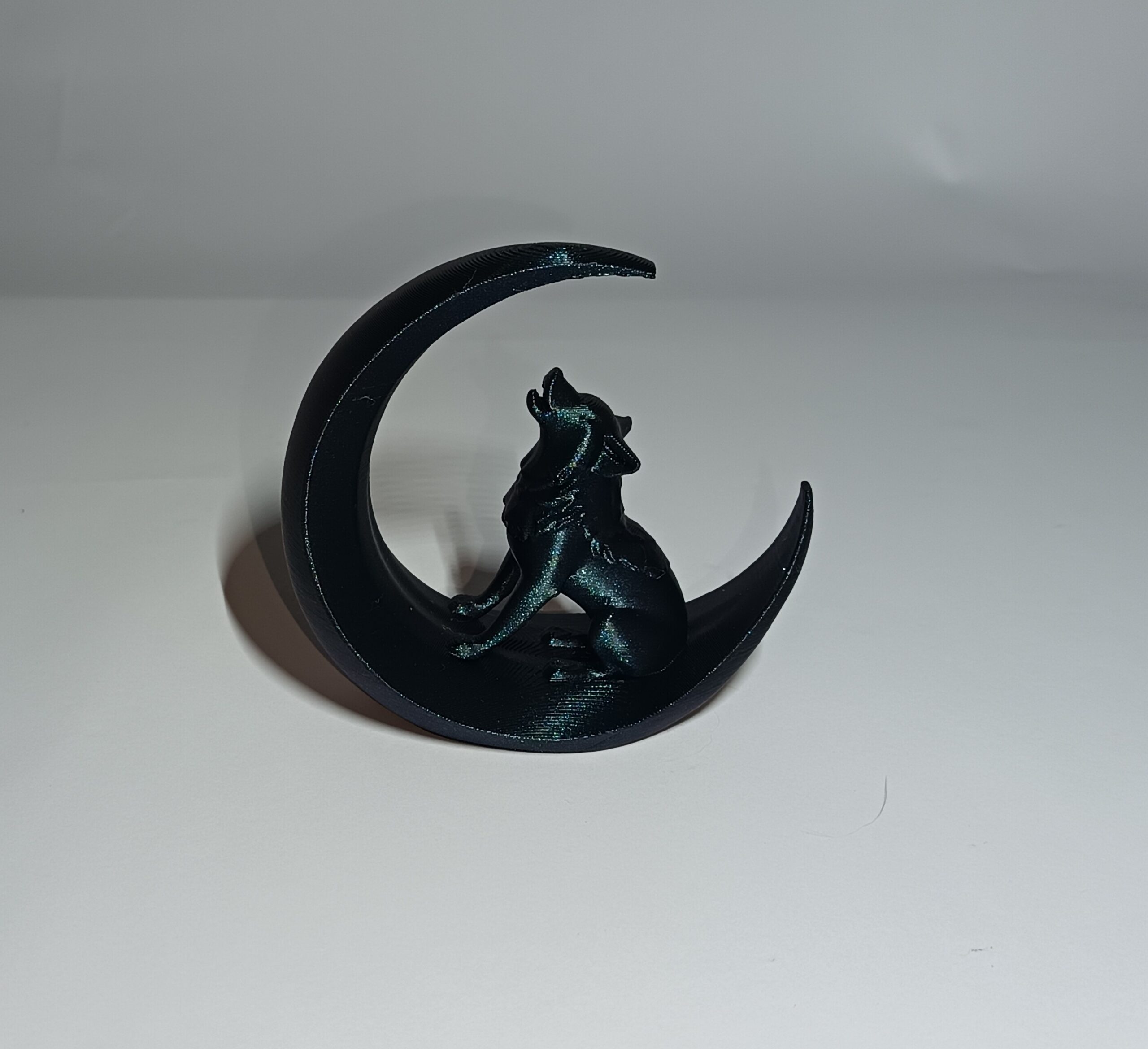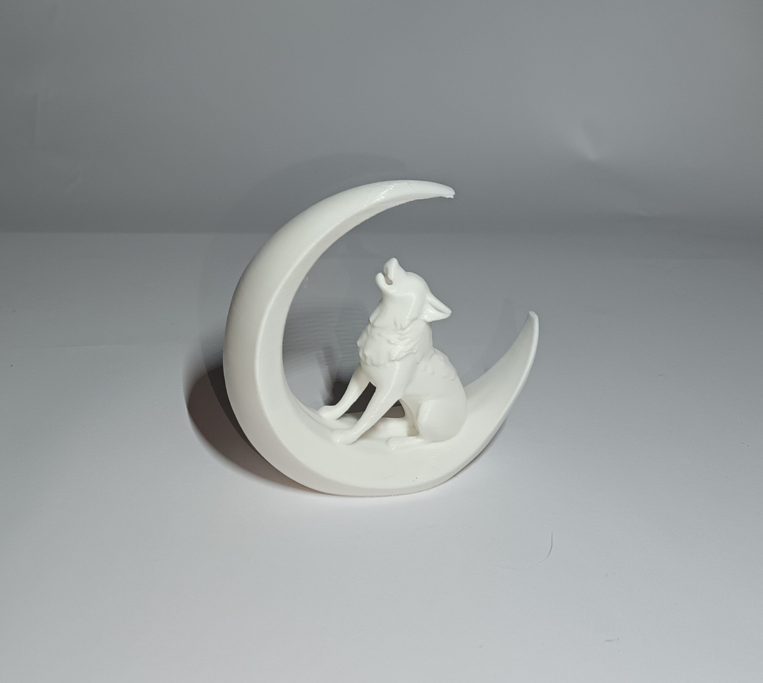 A holdat vonyító farkas az egyik legerősebb szimbólum – szabadság, erő és ösztön. Ez a modern, letisztult formavilágú 3D nyomtatott figura ezt a hangulatot hozza el egy minimalista, mégis látványos kivitelben.