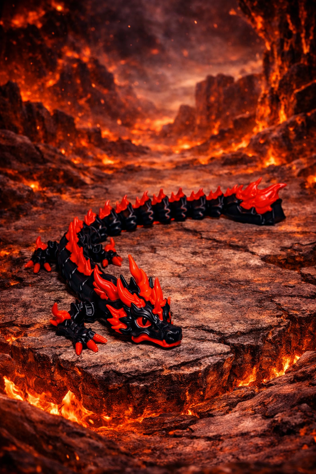 A Tűz Sárkány vad és energikus karakter, fekete-vörös színvilága az izzó lávát idézi. Rugalmas, ízületes testének köszönhetően könnyen formázható, látványos dísze lehet polcnak vagy íróasztalnak. Erőteljes megjelenése miatt ajándéknak is különleges választás fantasy rajongóknak.